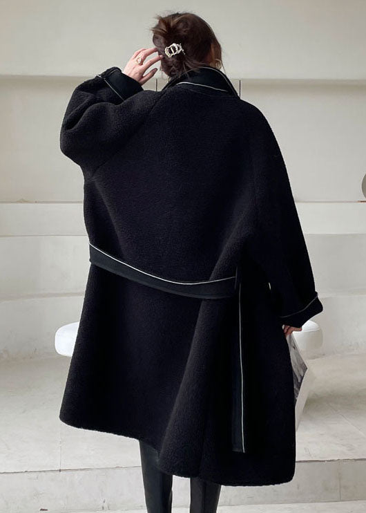Fashion Black Peter Pan Collar thick Faux Fur Outwear Winter