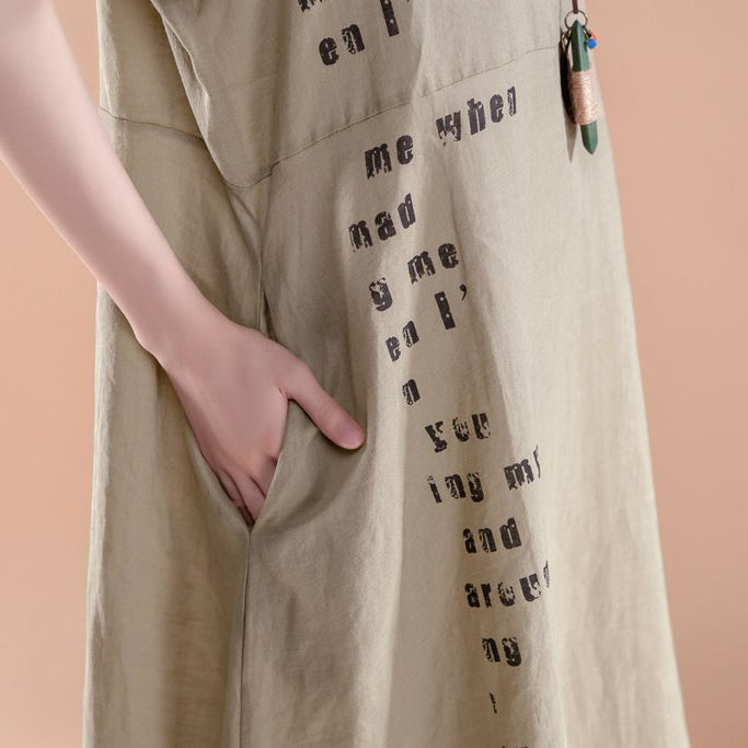 This dress is made of cotton or linen fabric, soft and breathy.