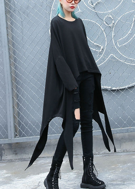 Fitted Black O-Neck asymmetrical design Loose Fall Long sleeve Top