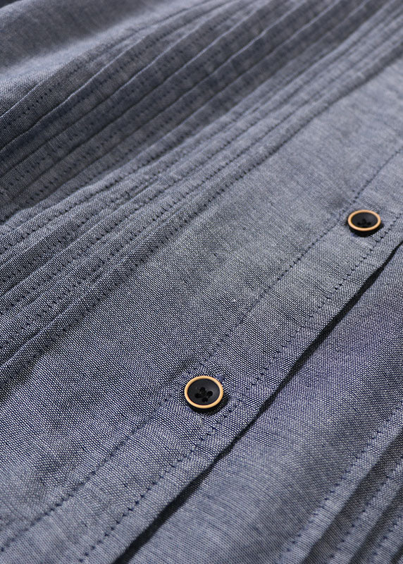 Fitted Grey Peter Pan Collar wrinkled Cotton Dresses Spring