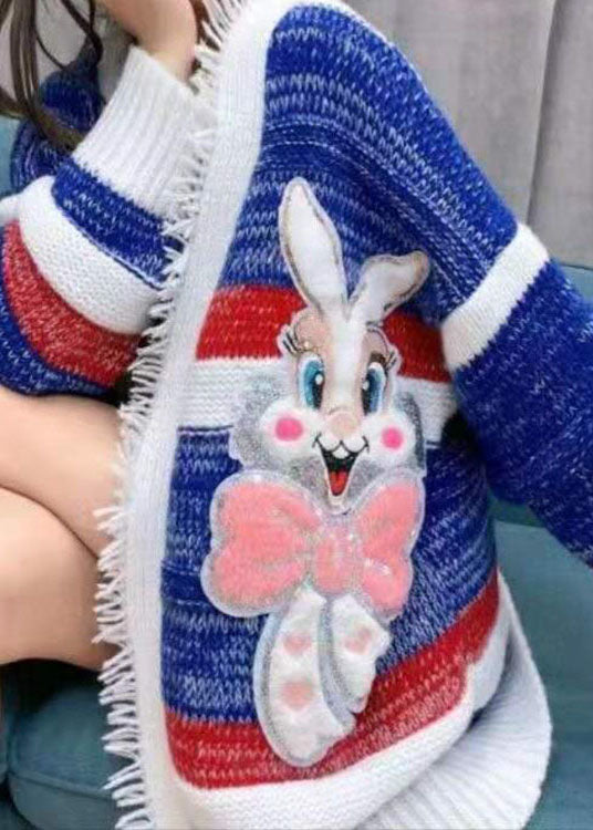 French Blue Loose Patchwork Casual Fall Knit Sweater Cardigans
