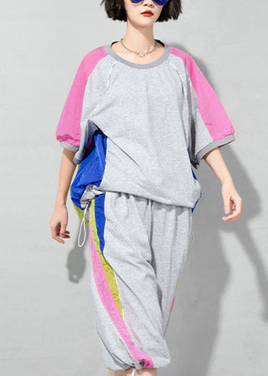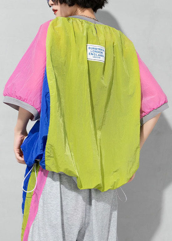 French White O-Neck Patchwork T-Shirt Half Sleeve