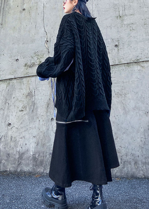 Handmade Black High Waist Pockets Zippered asymmetrical design Fall Skirts