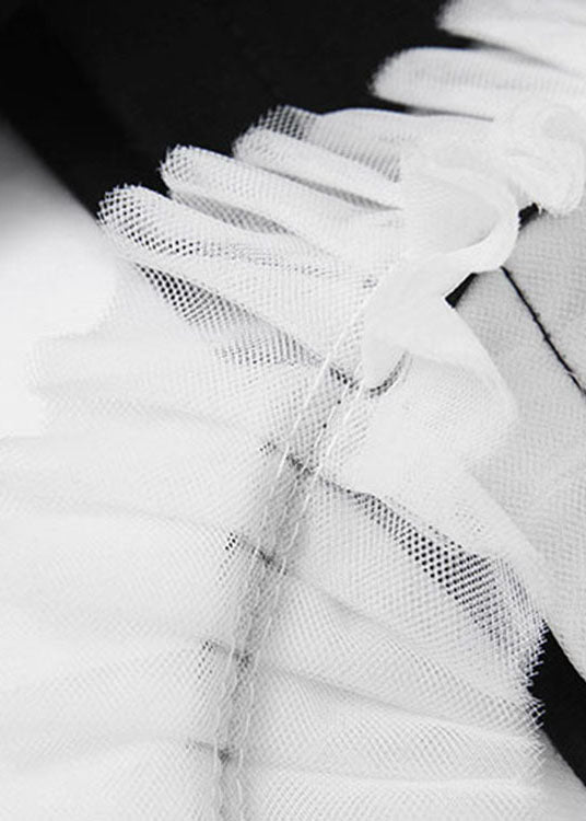 Handmade Black O-Neck Tulle Patchwork Warm Fleece Pullover Street wear Spring
