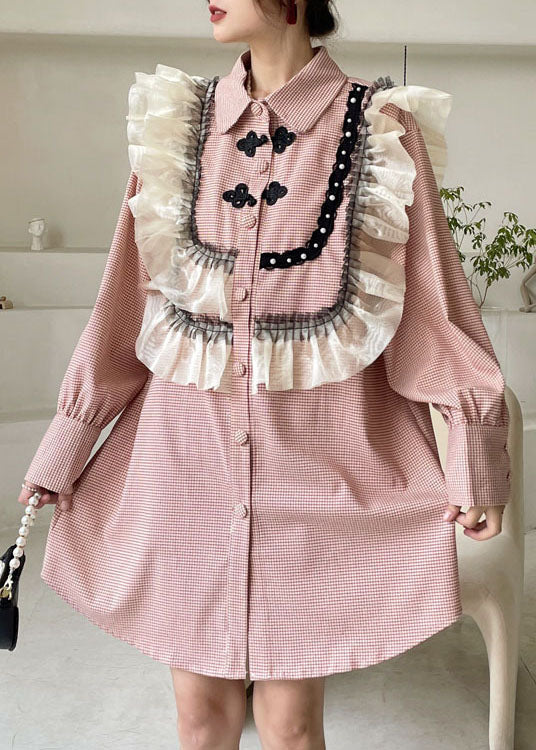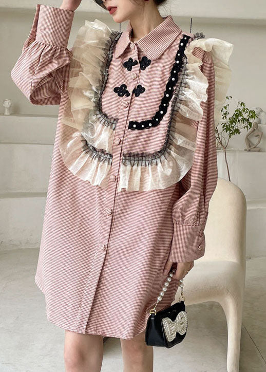 Handmade Red Ruffled Plaid Patchwork Dress Spring