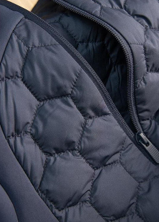 Italian Black Stand Collar Zip Up Slim Fit Fine Cotton Filled Jacket In Winter
