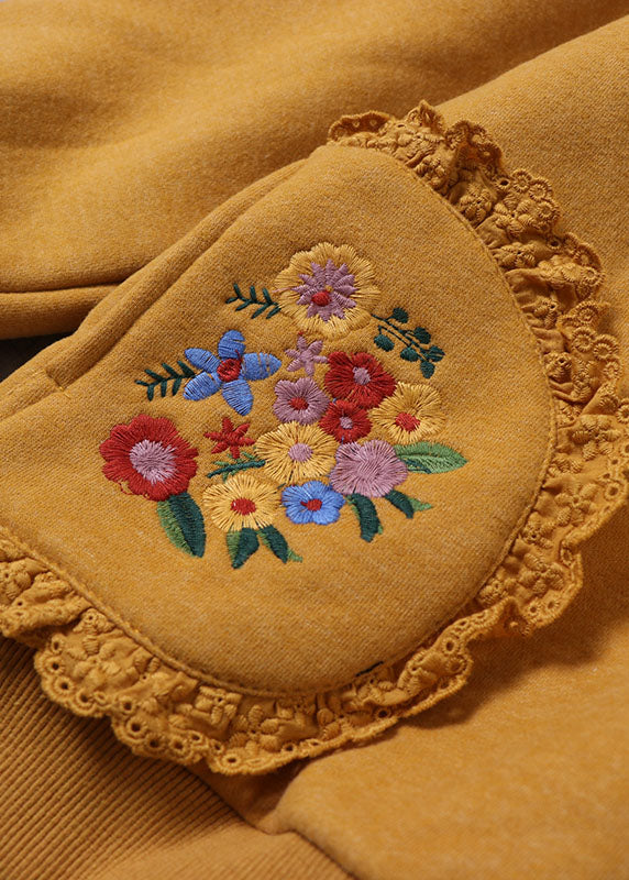 Italian Yellow Hooded drawstring Warm Fleece Pullover Sweatshirt Winter