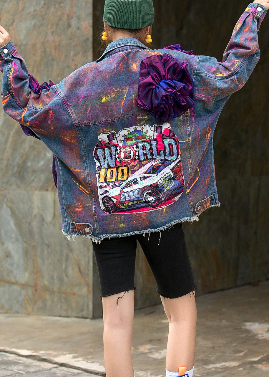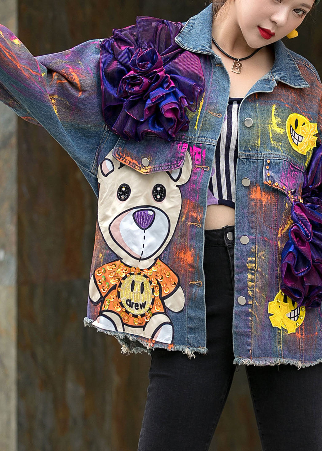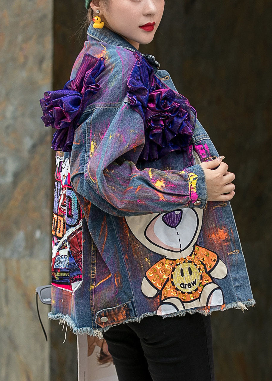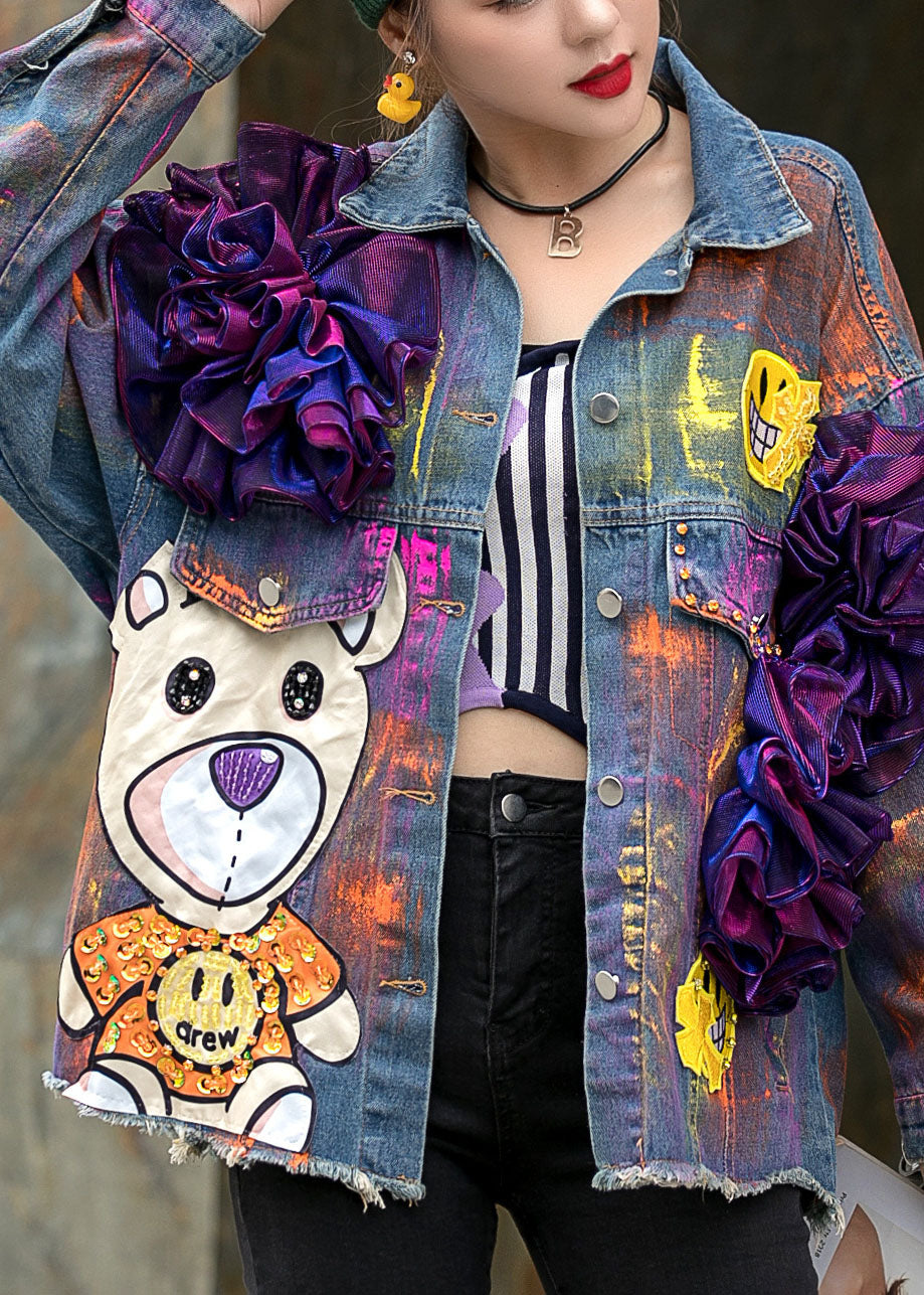 Luxury Blue PeterPan Collar fashion Patchwork Button Fall Long sleeve Jackets
