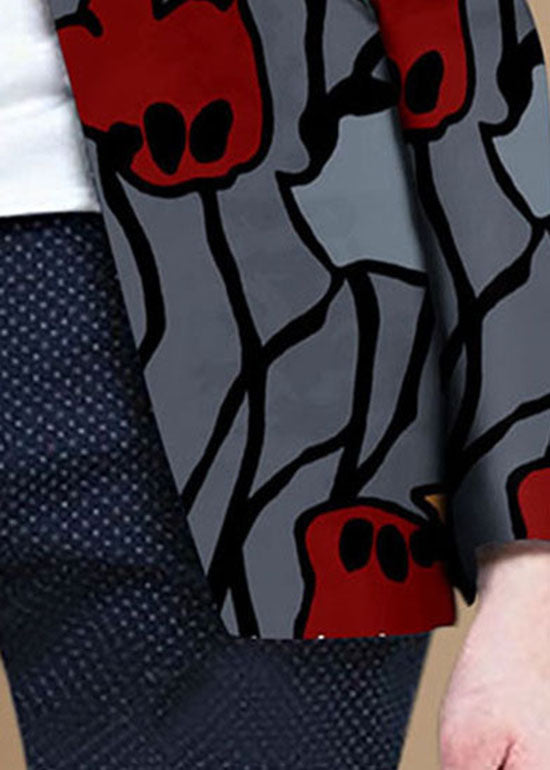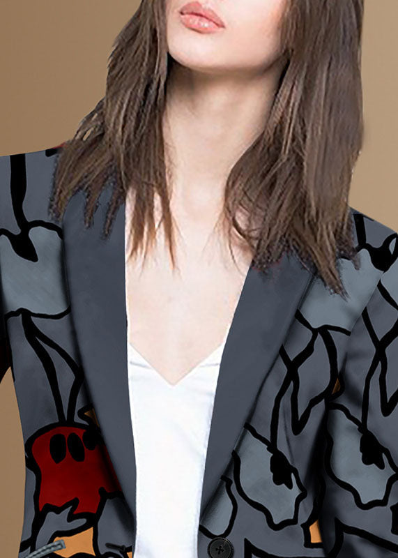 Modern Grey button Peter Pan Collar Print Western-style clothes coat Long Sleeve