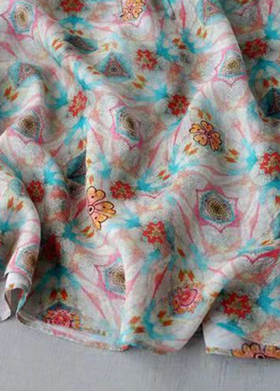 Modern Peter Pan Collar drawstring Button Print Linen Dress Three Quarter sleeve