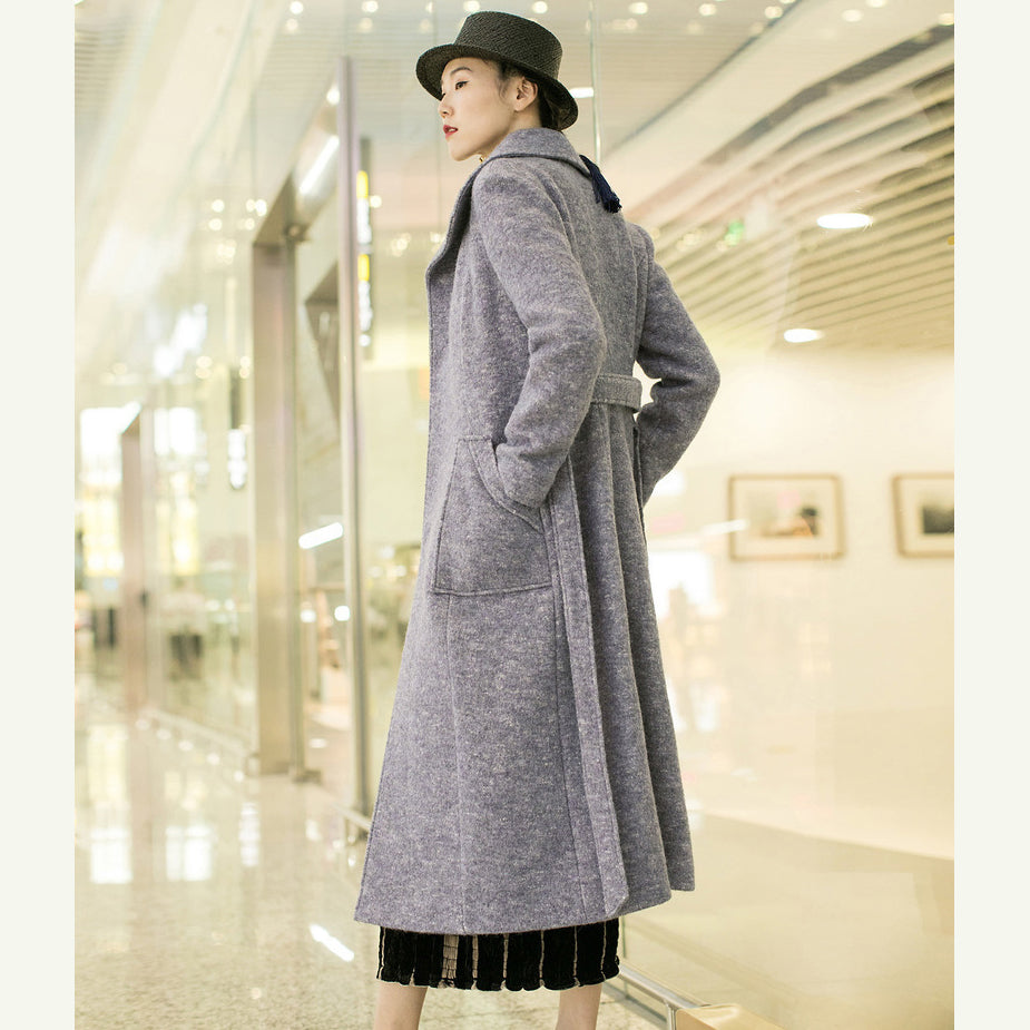 New light purple woolen outwear trendy plus size tei waist long coats pockets coats
