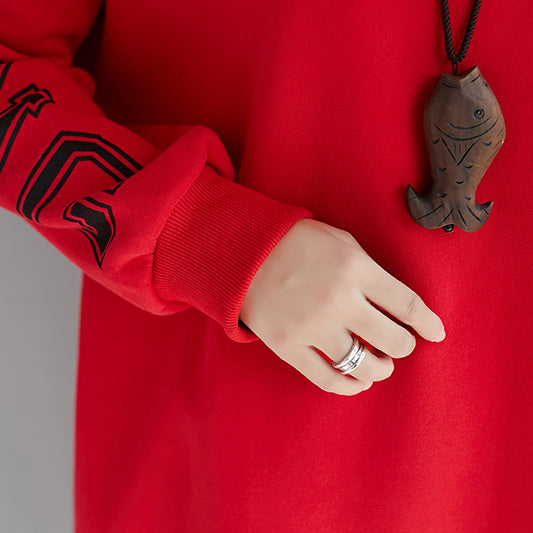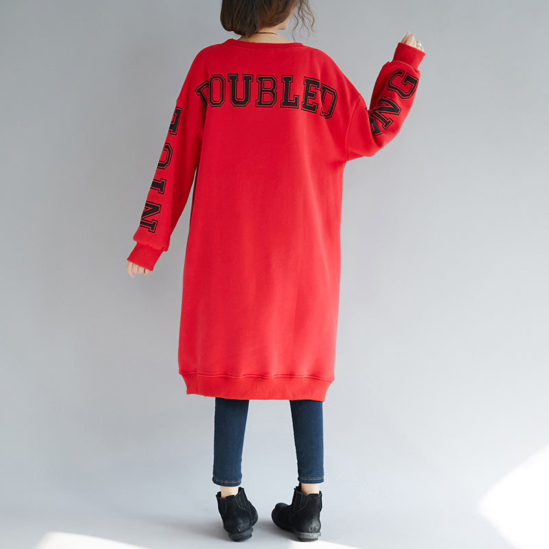 Omychic black cotton dress spring o neck gown alphabet prints cotton clothing dress
