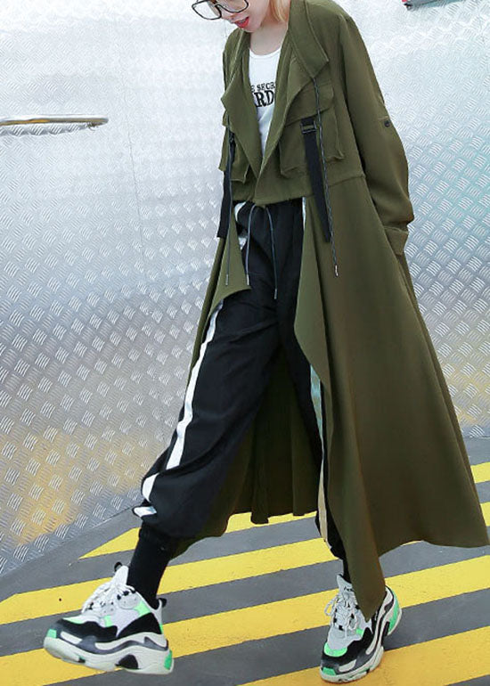 Plus Size army Green pockets Peter Pan Collar Asymmetrical trench Coat Spring