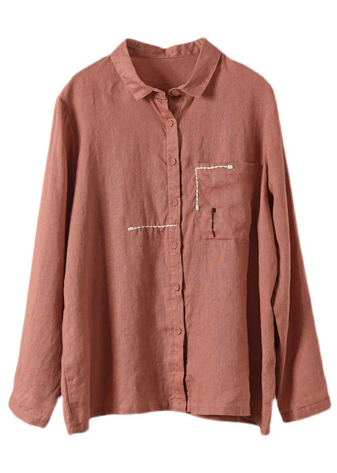 Plus Size Black Peter Pan Collar Patchwork Linen Blouses Spring