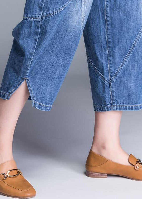 Plus Size Blue Pockets Patchwork lantern Fall Denim Pants