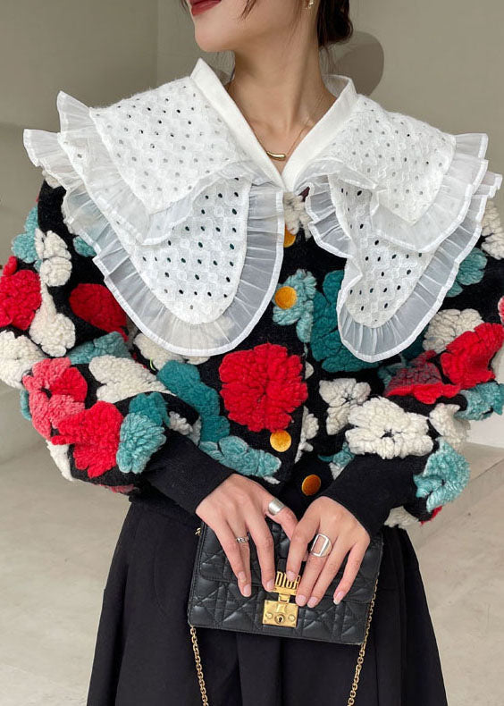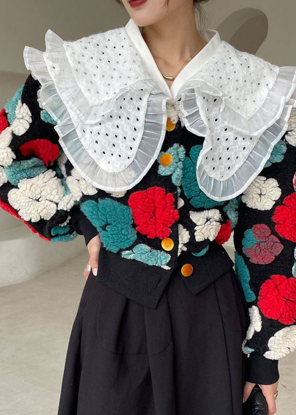 Plus Size Bright red flower Puff Sleeve Faux Fur Winter Coat