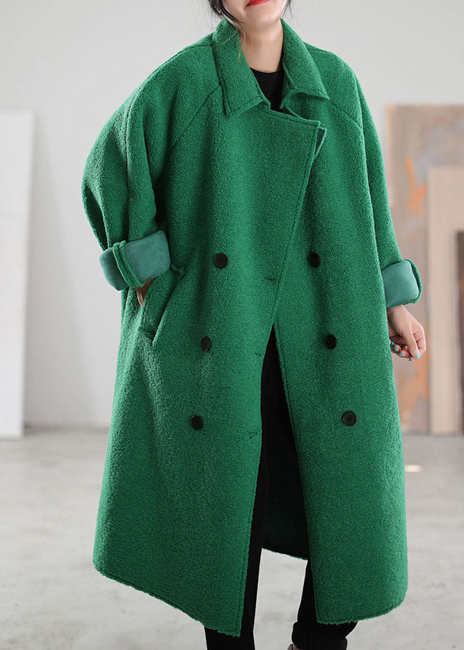 Plus Size Green PeterPan Collar double breast Faux Fur Winter Coat