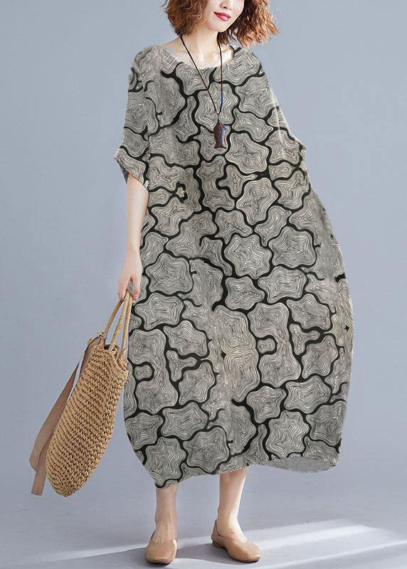 Plus Size Orange O-Neck Striped Summer Cotton Maxi Dresses