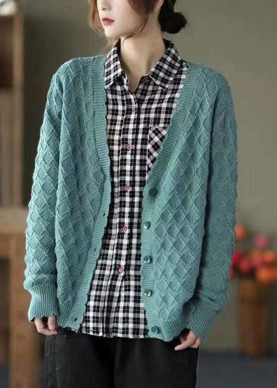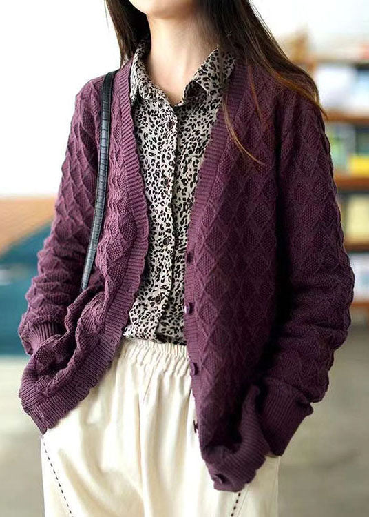 Plus Size Orange Red V Neck Button Fall Knit Sweater Coat