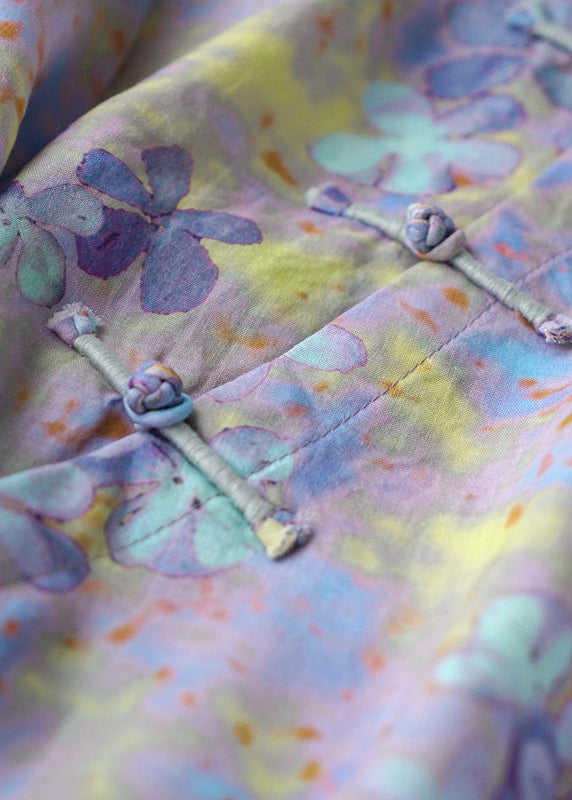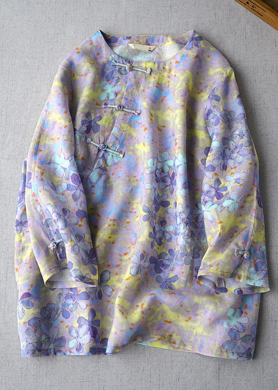 Plus Size Purple O-Neck Linen Shirt Top Three Quarter sleeve