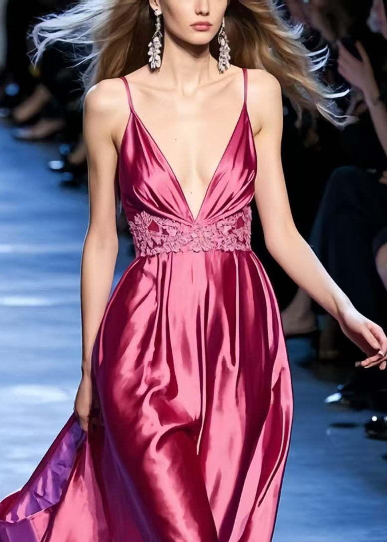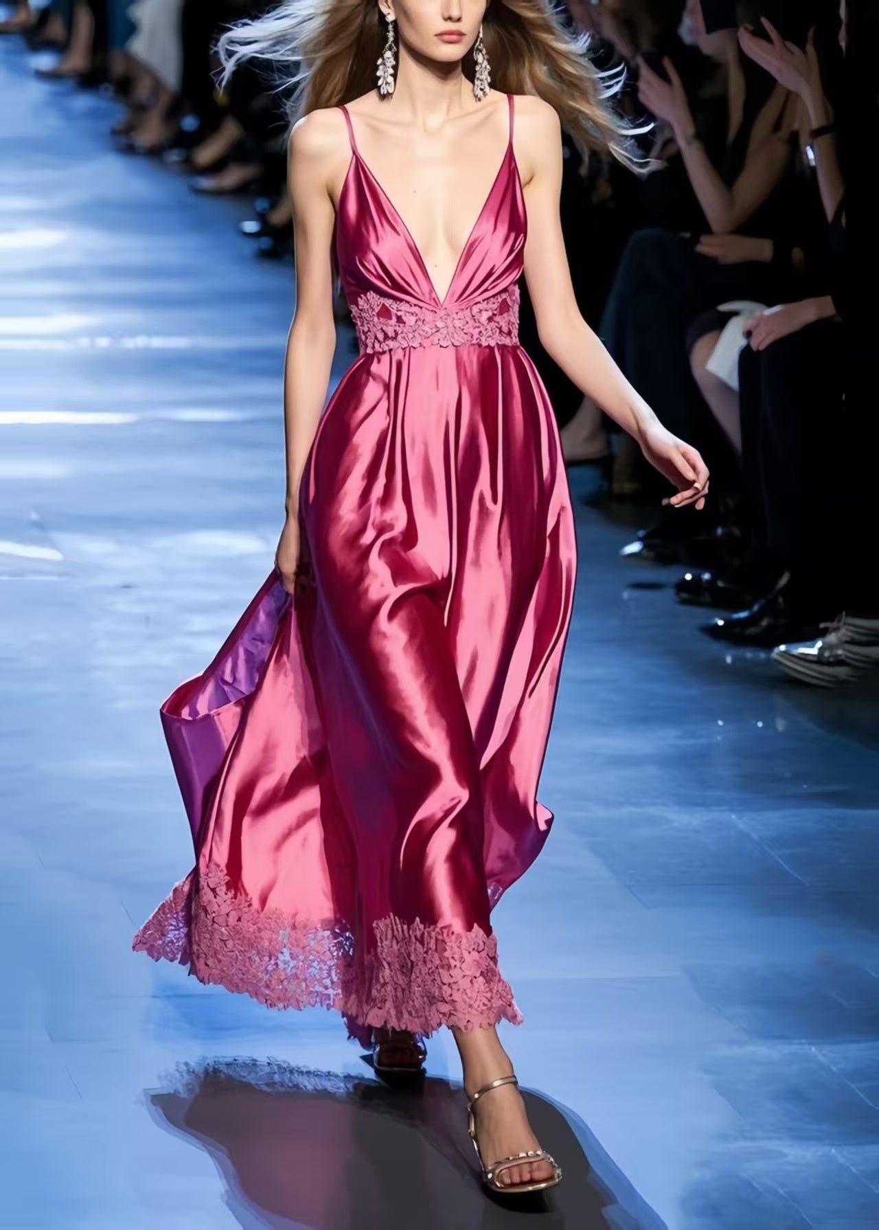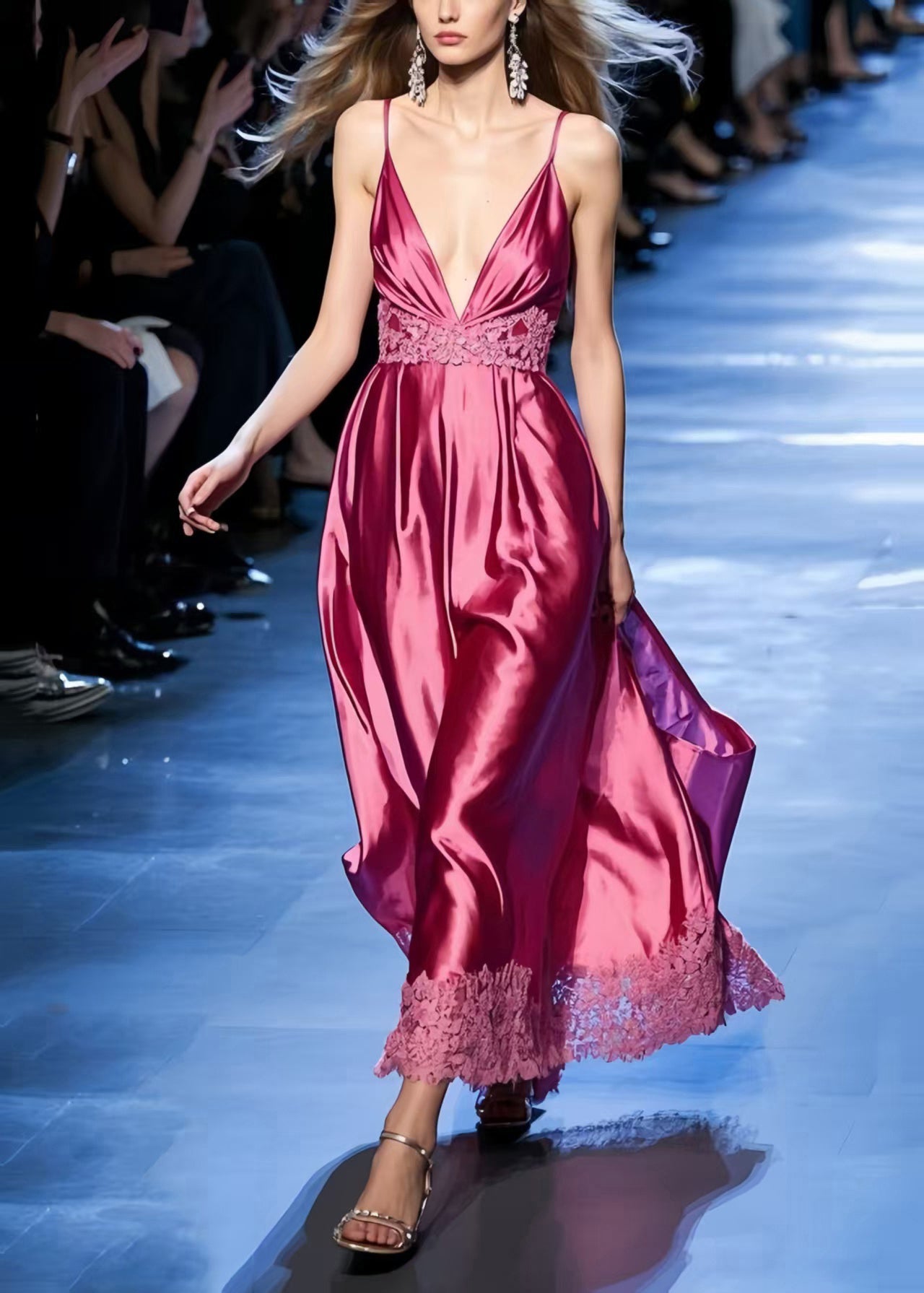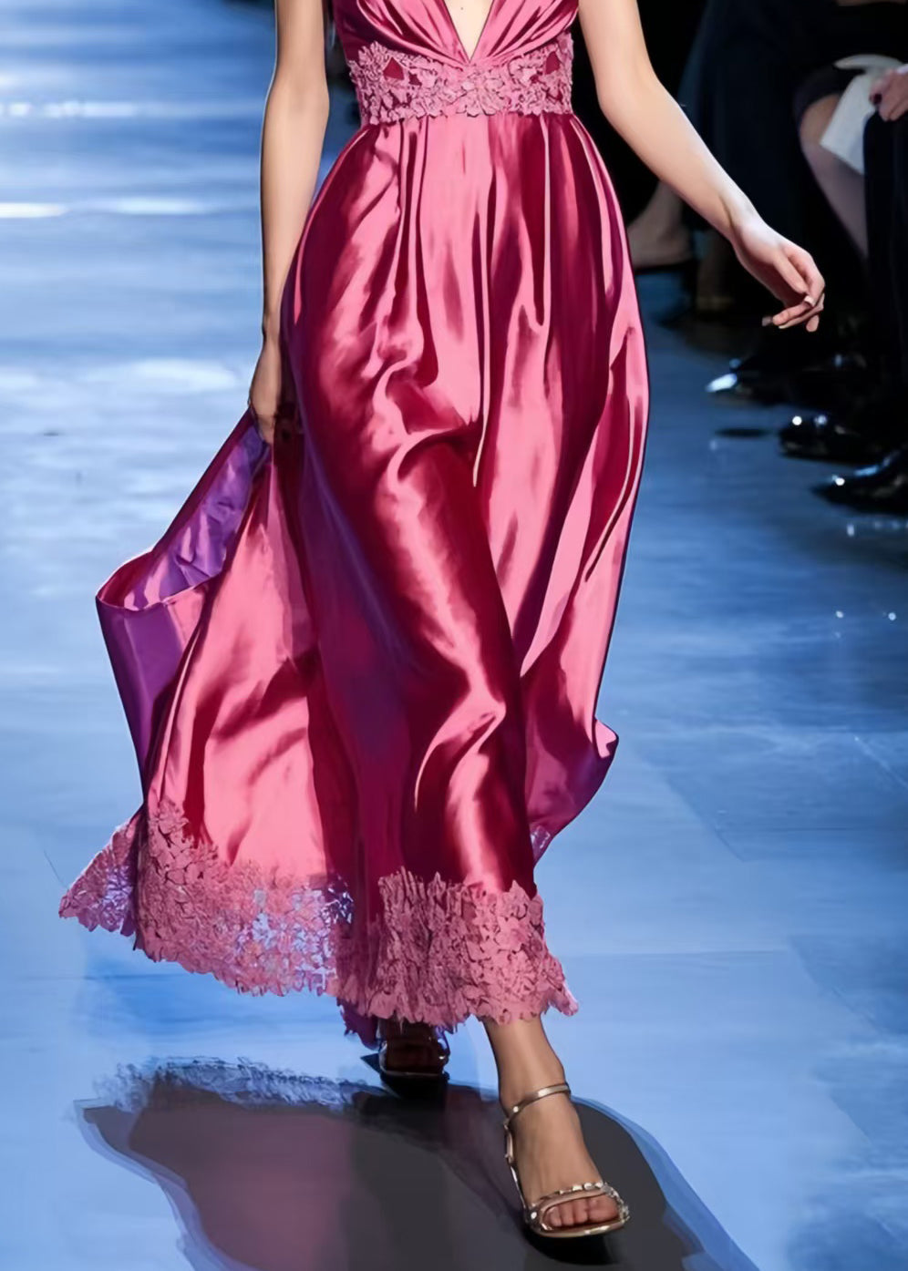 Rose Patchwork Lace Ice Silk Summer Dress Exra Large Hem