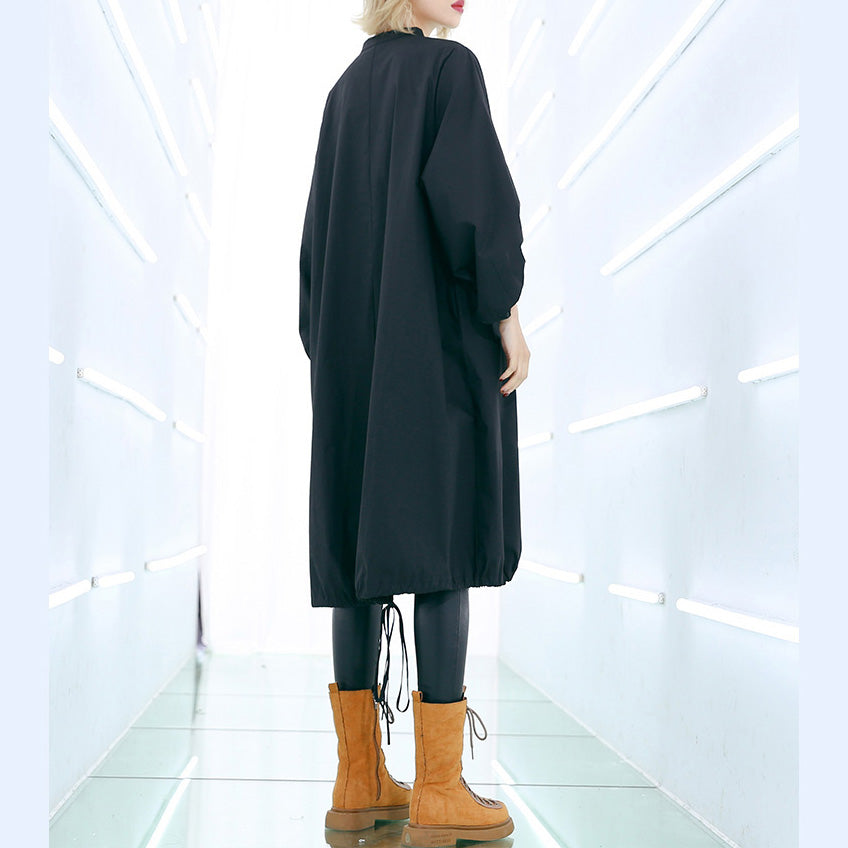 Style black Cotton dresses Vintage Outfits drawstring Midi Dress