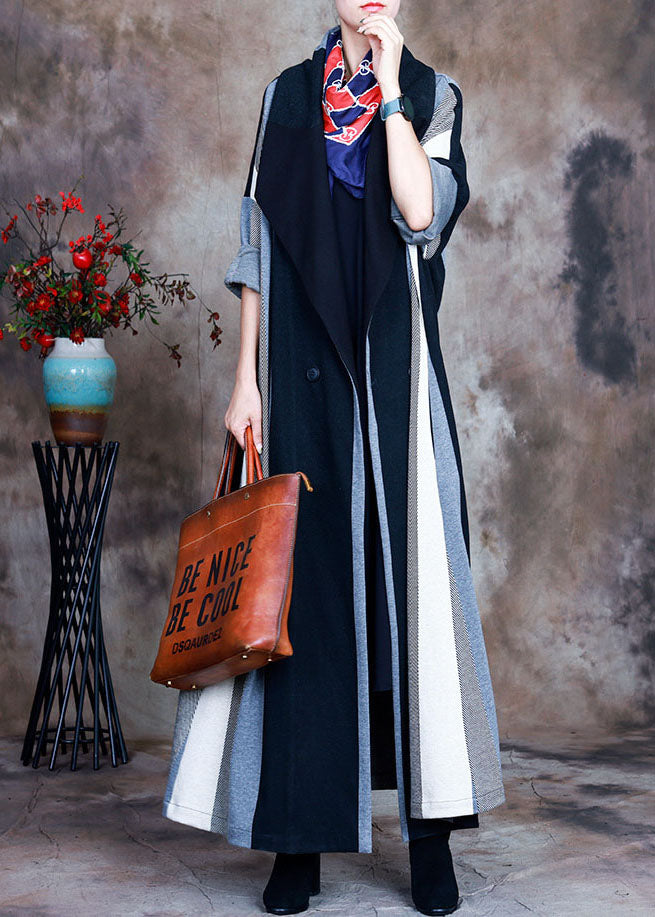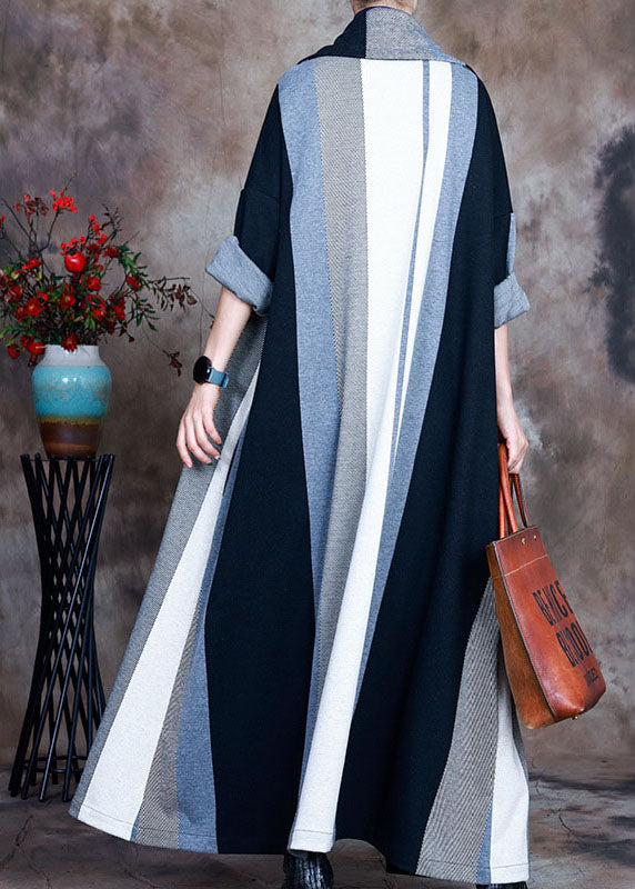Style Blue Peter Pan Collar Striped Woolen Winter Coat