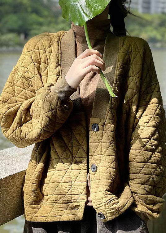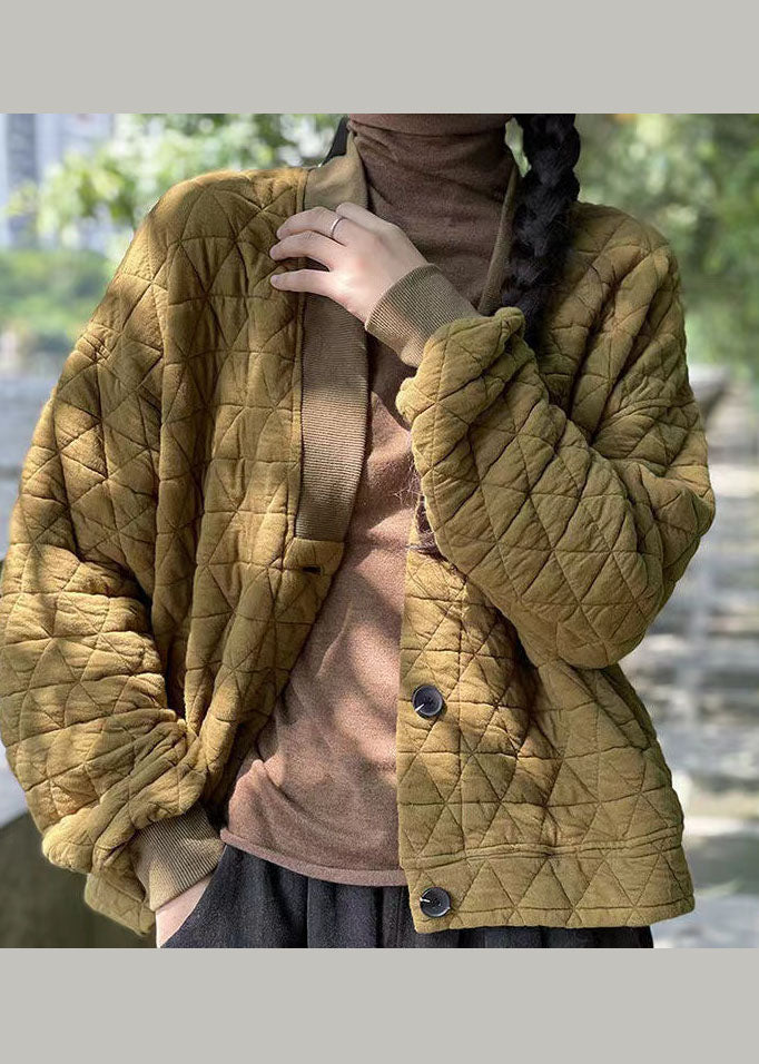 Style Yellow V Neck Fine Cotton Filled Loose Sweatshirts Top Winter