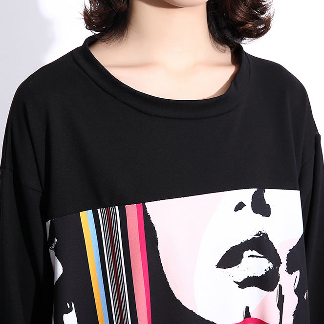 stylish black silk cotton blended dress casual O neck asymmetrical design gown casual patchwork baggy dresses
