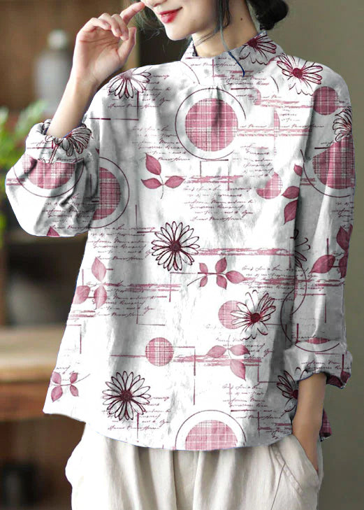 Stylish Blue Embroideried retro Linen Blouse Tops Spring
