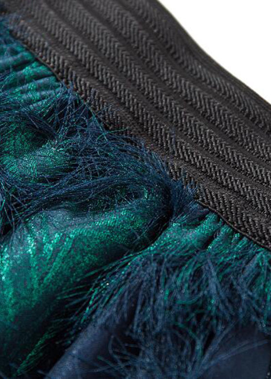 Stylish Blue Feather Tassel Elastic Waist Maxi Skirt Spring