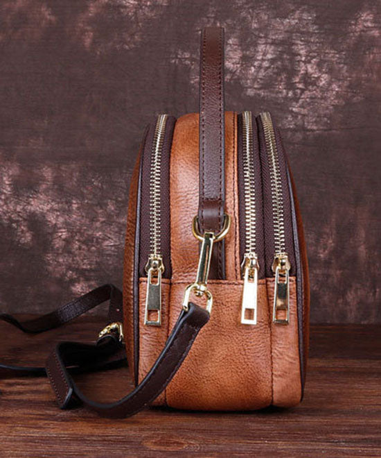 Stylish Brown Print Paitings Calf Leather Backpack Bag
