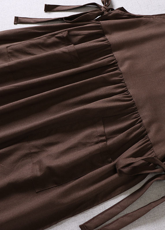 Stylish Chocolate Bow Patchwork Pockets Dress Sleeveless