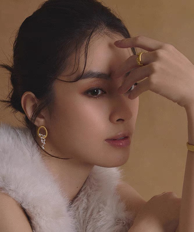 Stylish Gold Copper Overgild Zircon Tassel Drop Earrings