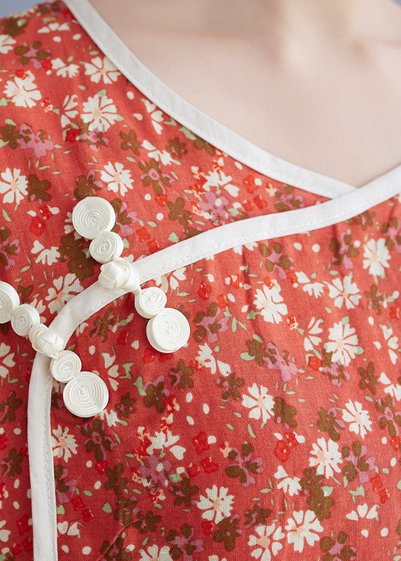 Stylish Orange retro Print Loose Fall Shirt Half Sleeve Top