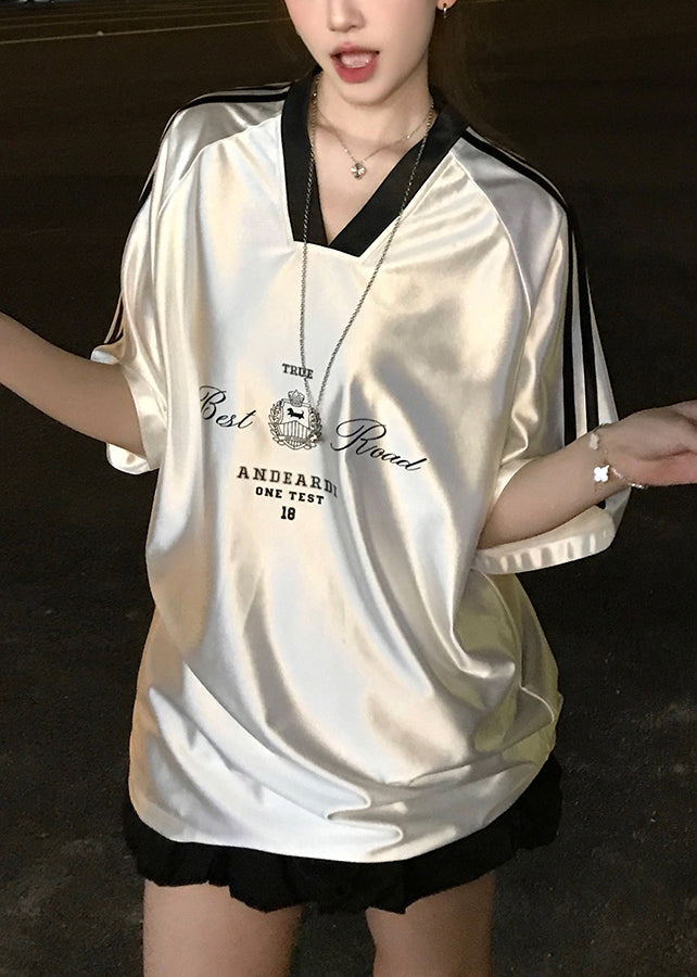 Stylish Silvery V Neck Print Silk Tank Tops Summer
