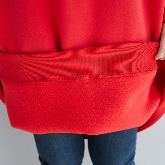 fine red cotton spring dress Loose fitting cotton caftans alphabet prints cotton clothing o neck dresses