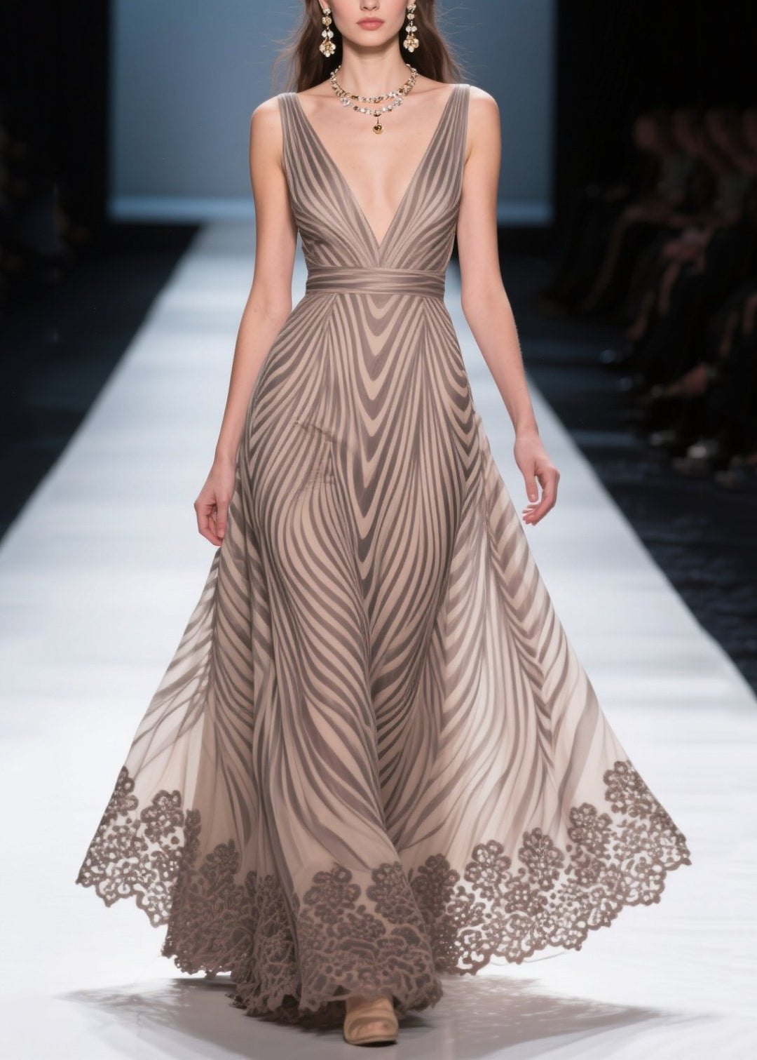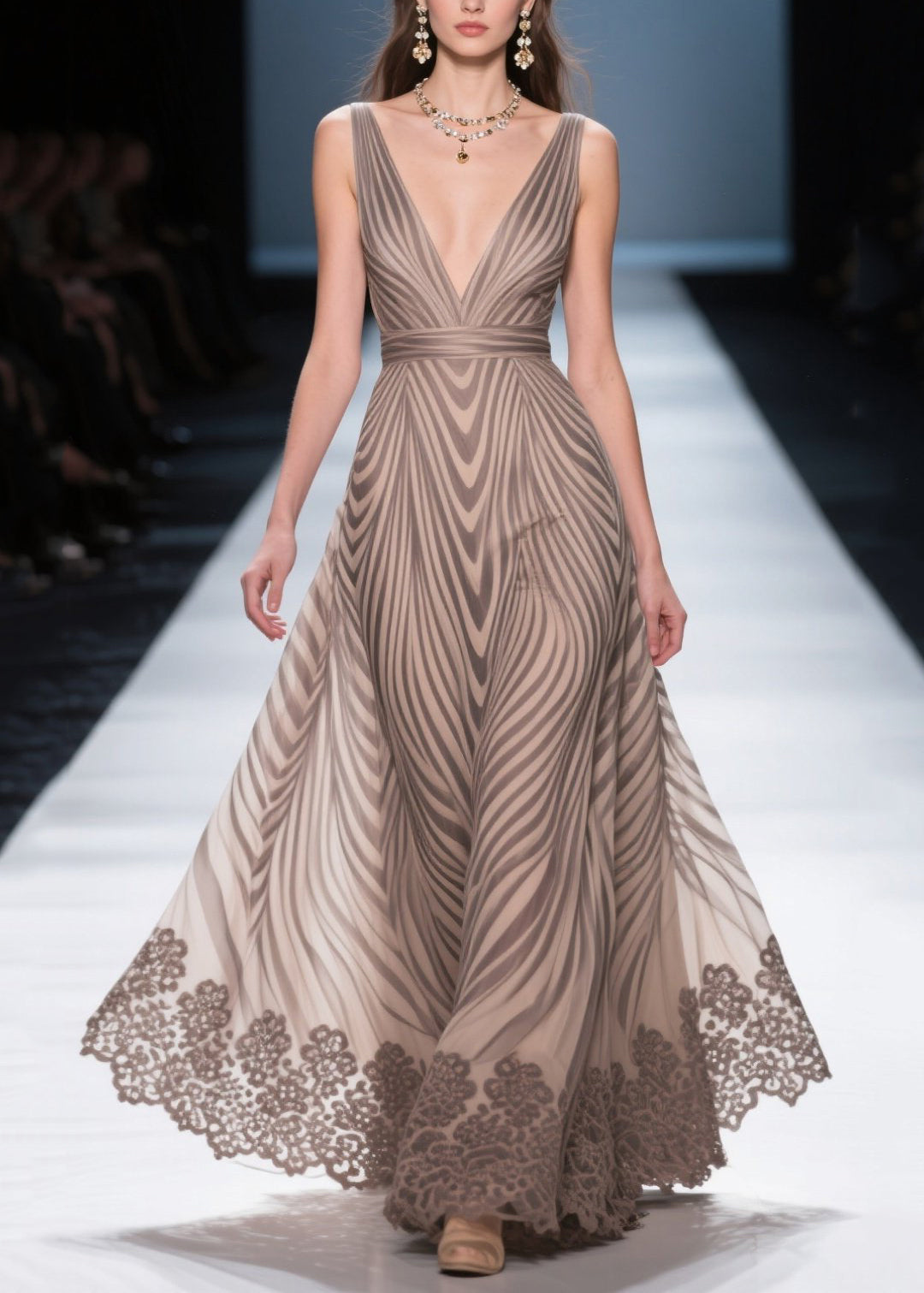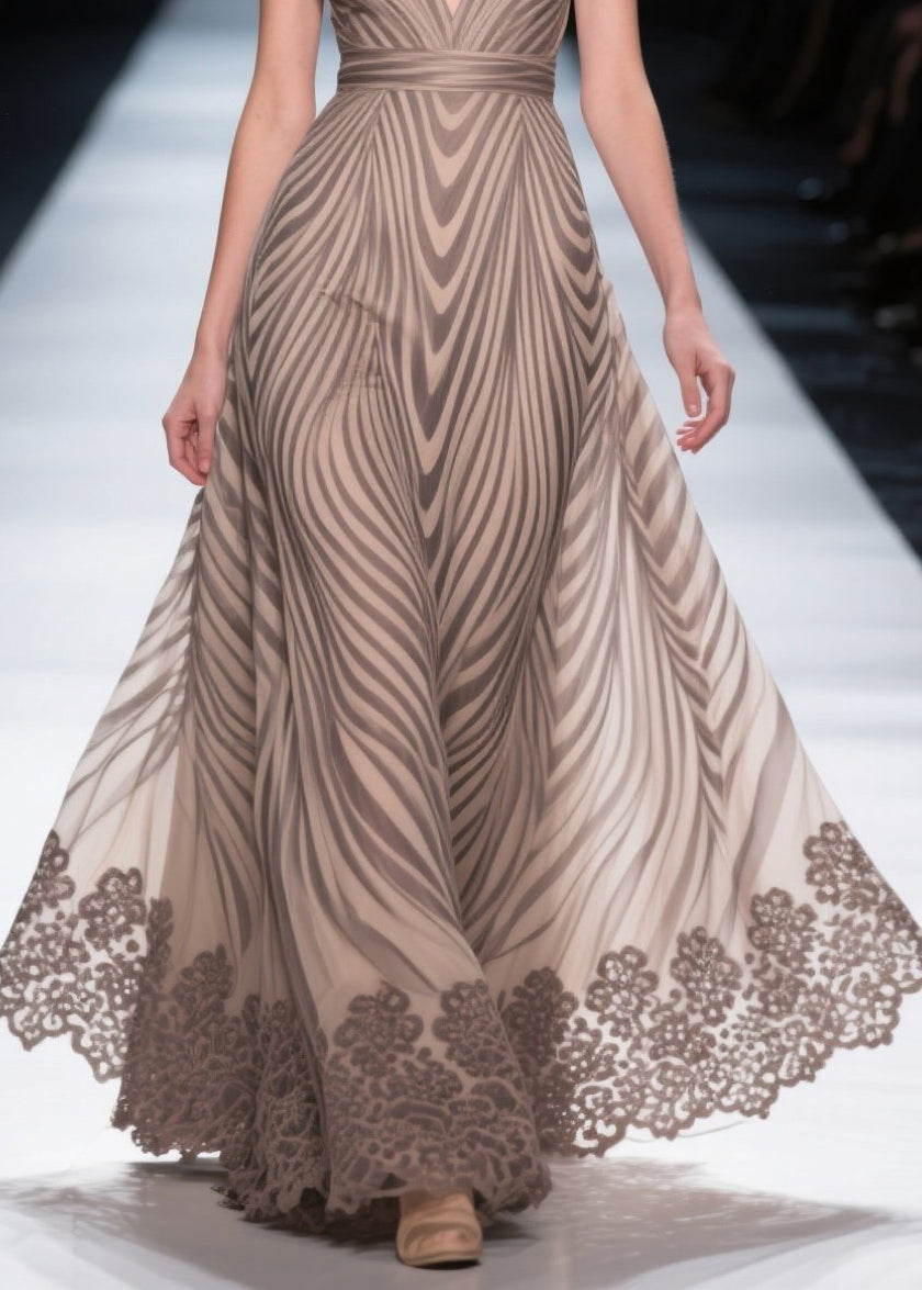 Unique Khaki Zebra Pattern Exra Large Hem Chiffon Dresses Summer