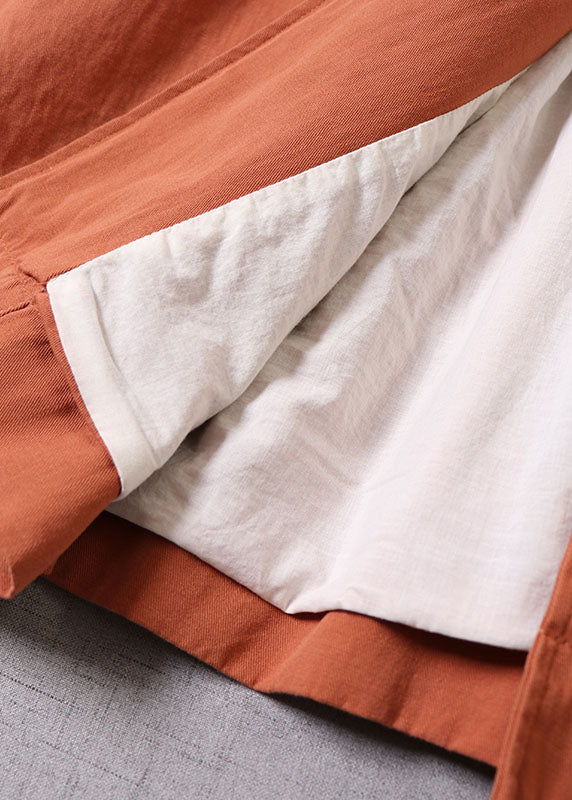 Women Orange Peter Pan Collar Button Cotton Winter Coat