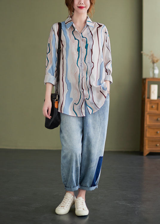 Women PeterPan Collar Button Print Fall Tops Long sleeve