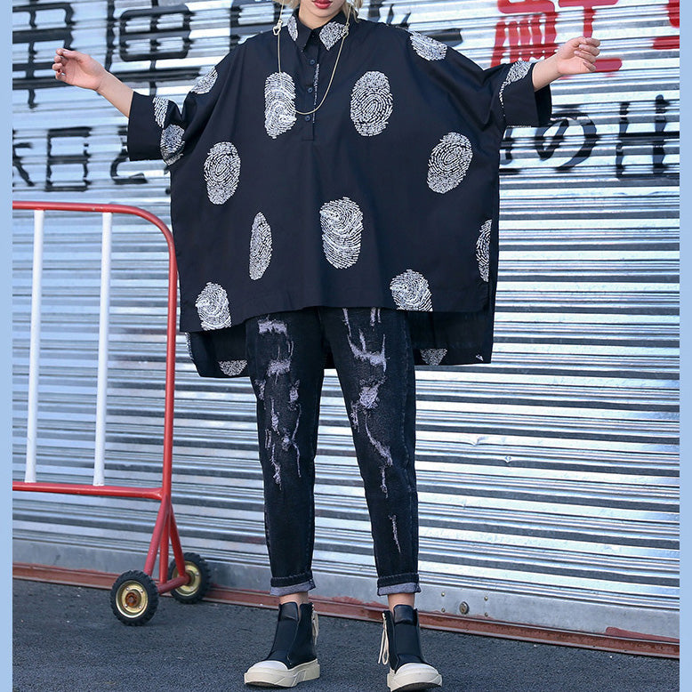 Women pockets cotton top silhouette top quality Tutorials black print oversized blouses