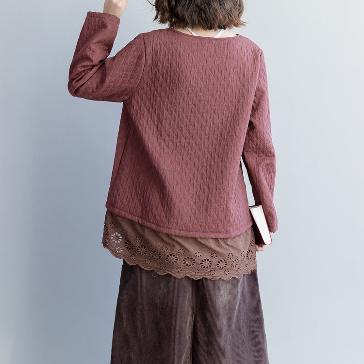 Women purple red cotton clothes 2019 Cotton baggy o neck hollow out top