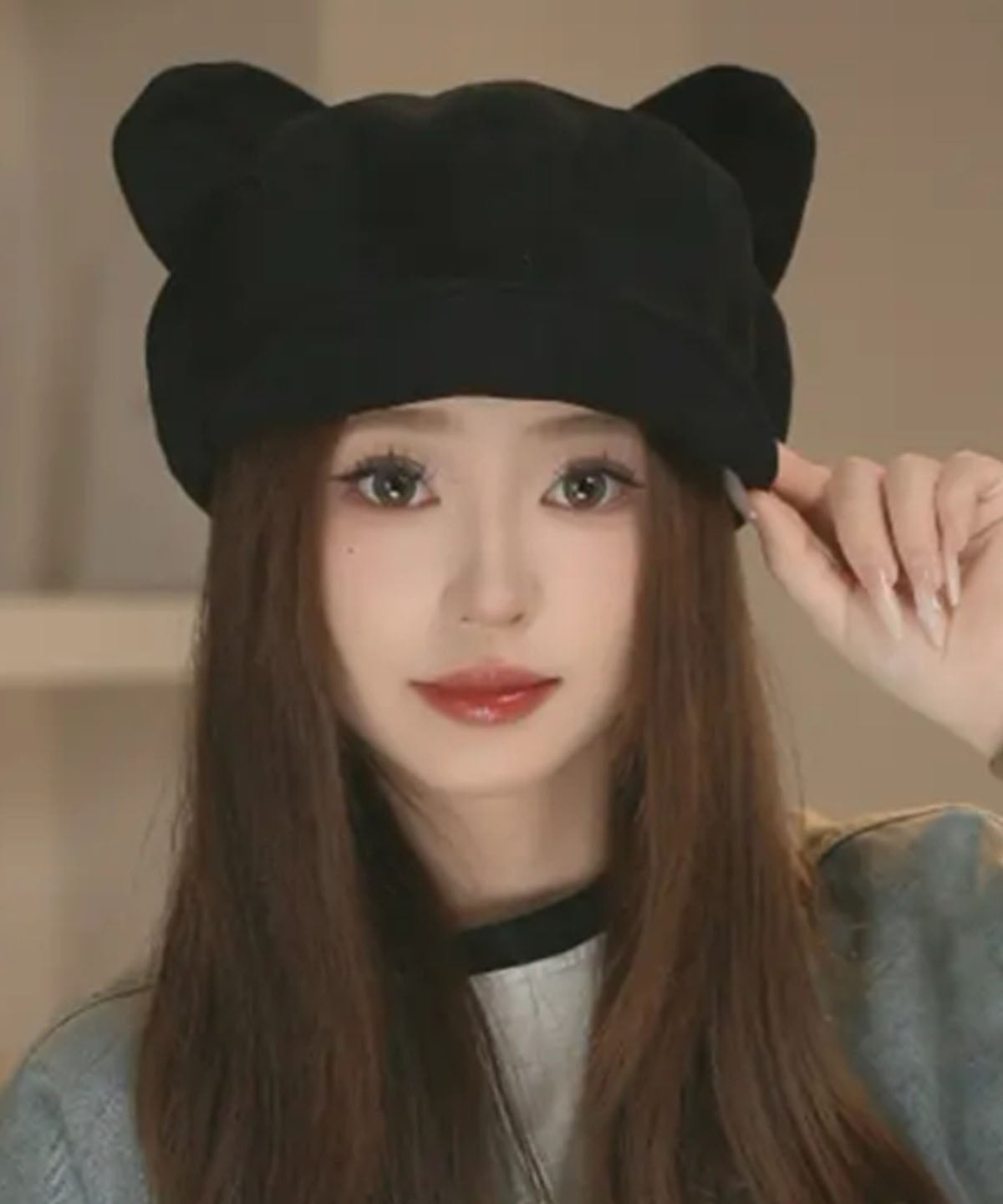 2025 New Coffee Faux Suede Cat's Ears Octagonal Hat