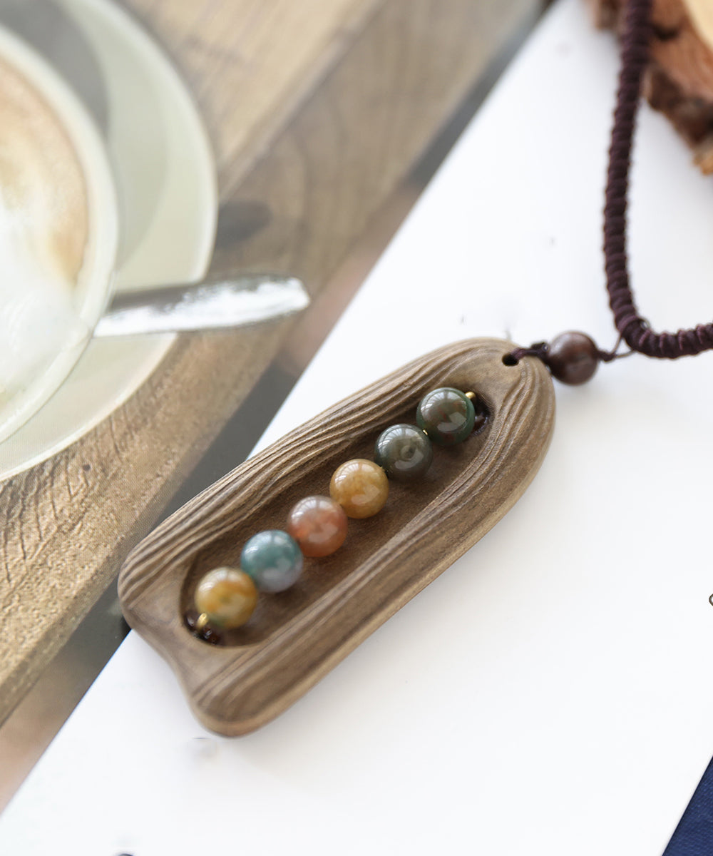 Collar con colgante de seis perlas tejido a mano en color caqui artístico