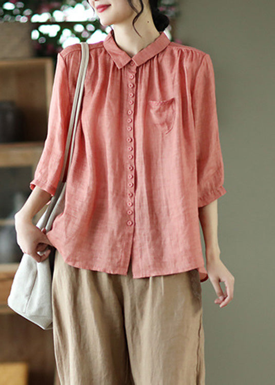 Camisa de lino con botones y cuello Peter Pan color caqui Art de verano