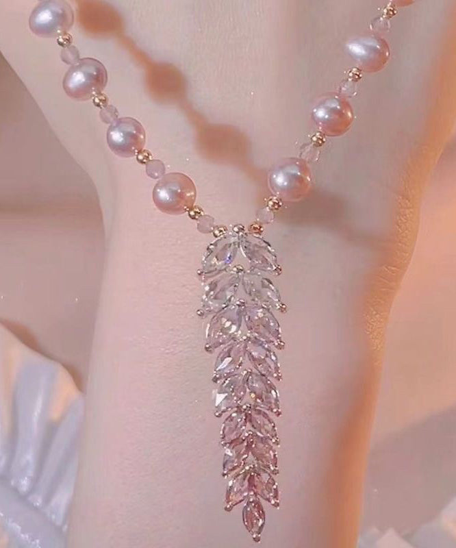 Collar con colgante de borla de espiga de trigo y perla de aleación de lavanda