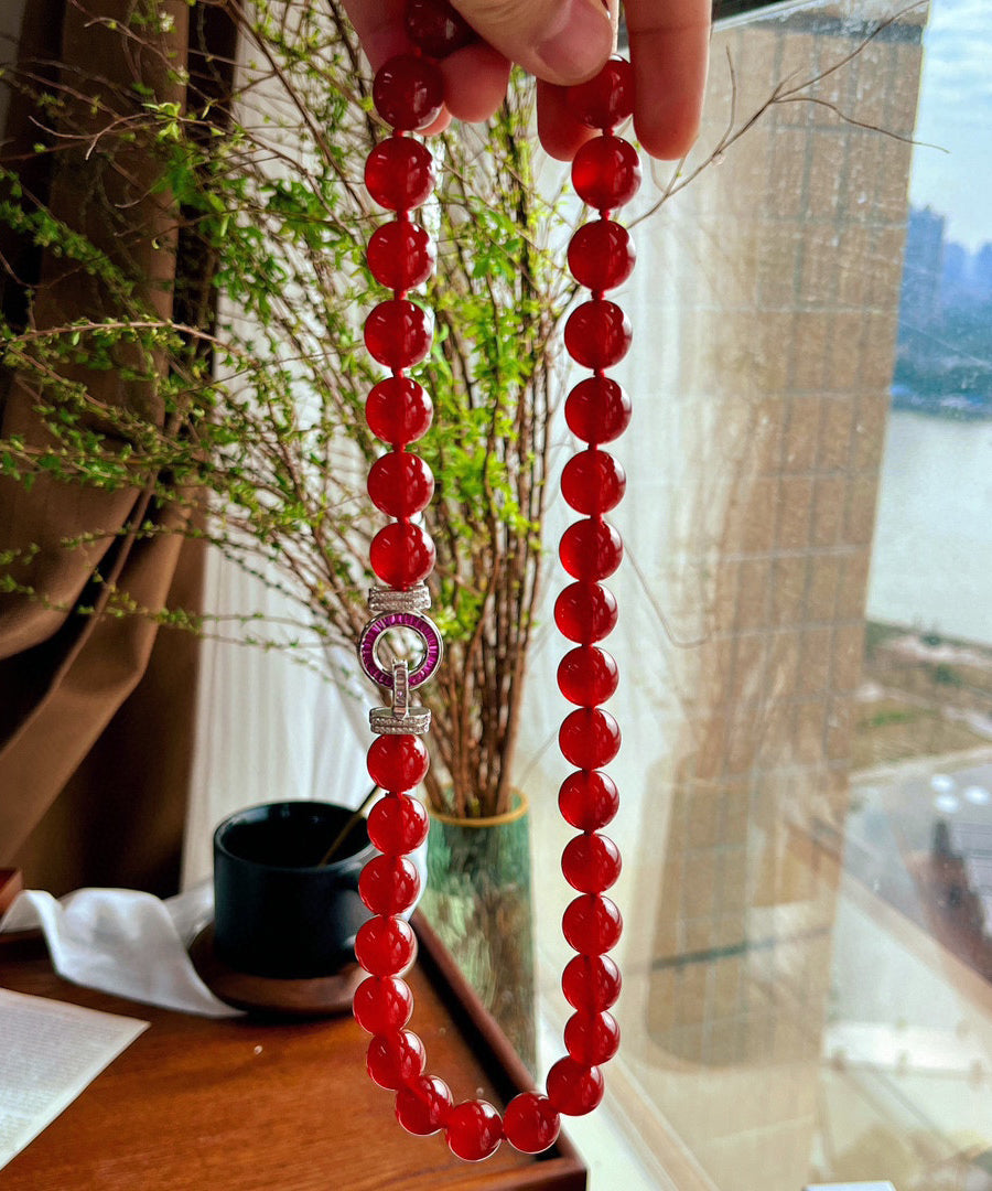Collar de cuentas graduadas de ágata roja tejida a mano