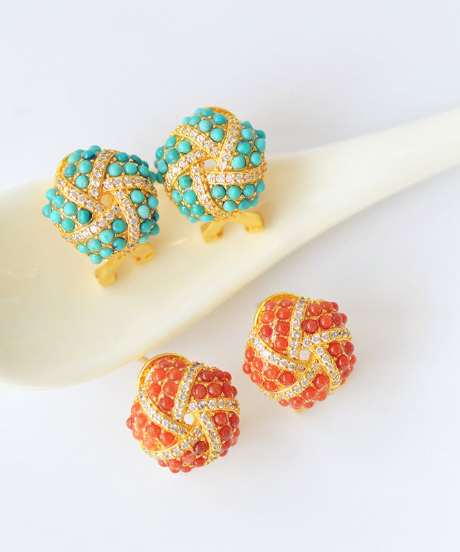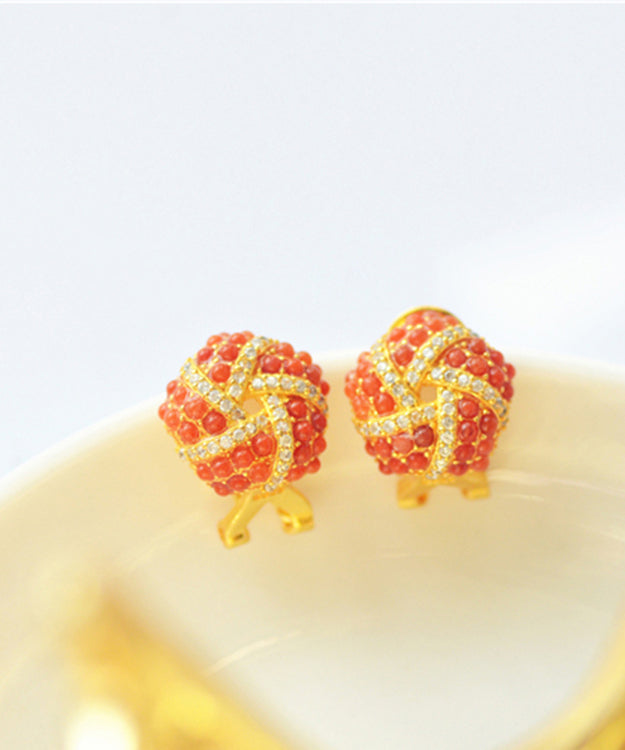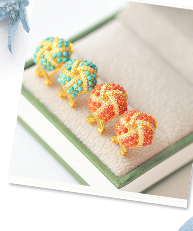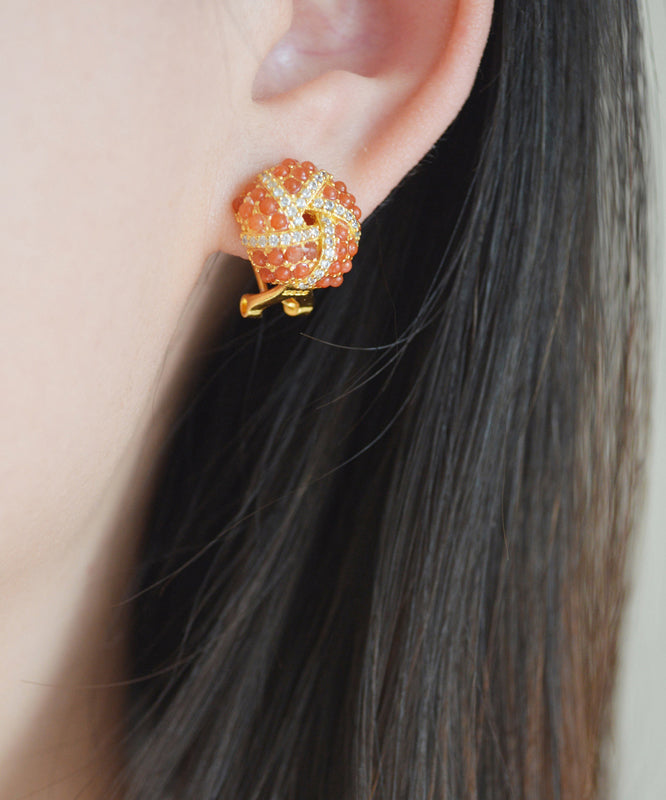 Pendientes de plata de ley roja con ágata y circonita dorada