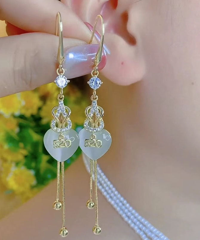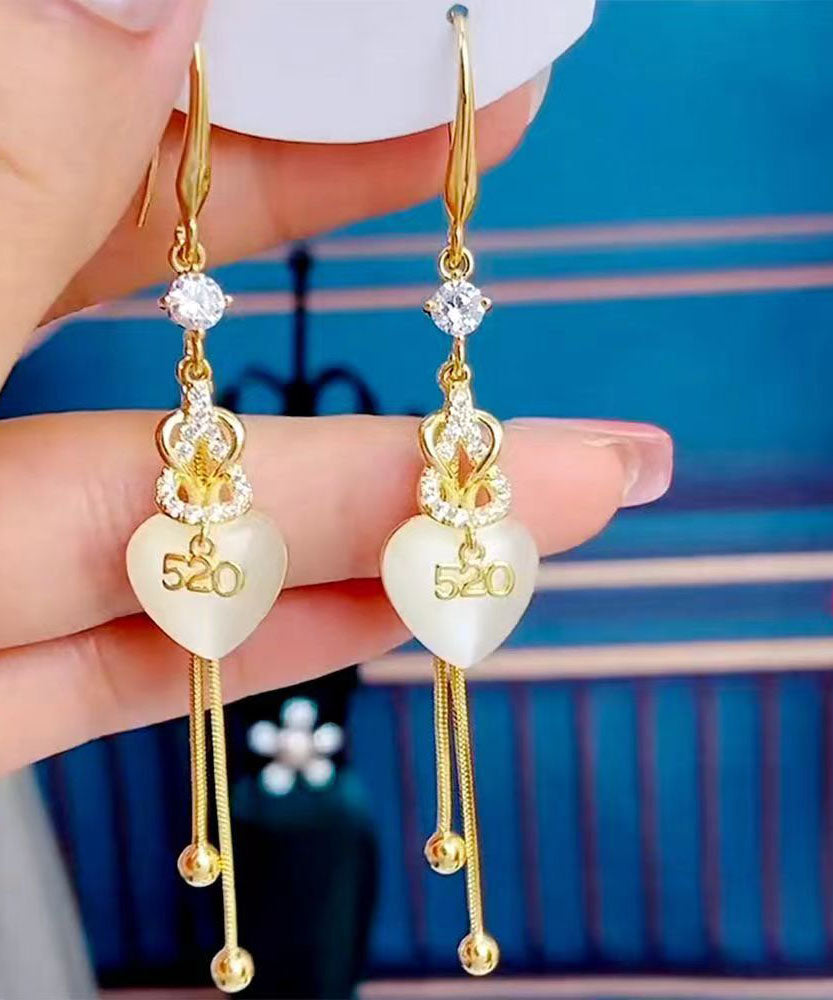 Hermosos aretes colgantes con borlas de amor de cobre dorado con incrustaciones de circonita 520
