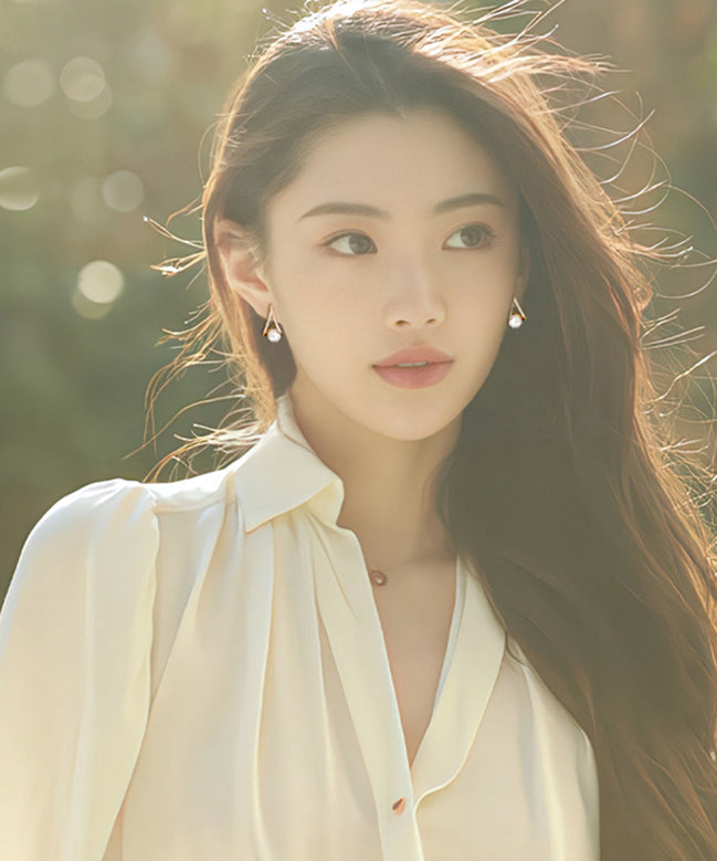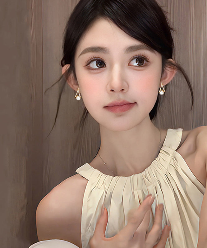 Hermosos aretes de perla y circonita de aleación de plata esterlina y oro